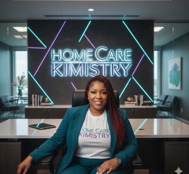 Home Care Kimistry was founded by Kimberly Coleman, a visionary entrepreneur, financial educator, and leader in the home care space. Kimberly has dedicated her life to serving others through compassion, excellence, and Kingdom-driven principles. As the CEO of Home Care Kimistry and multiple care-support initiatives, she has years of experience in personal care, client advocacy, and community-centered service models.